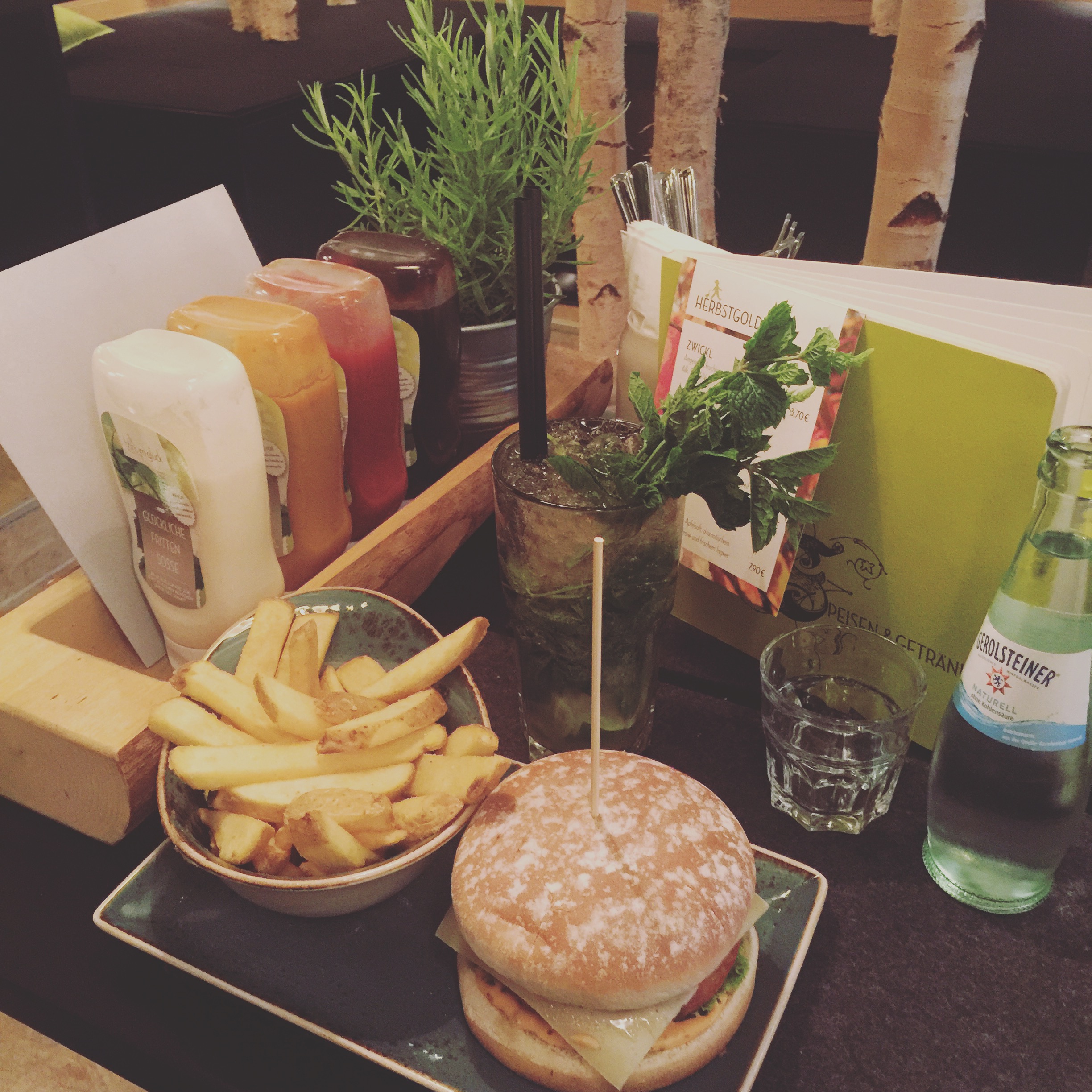 Hans Im Gluck definitely one of the best burger places. Love the decor in too, with tree stalks everywhere!